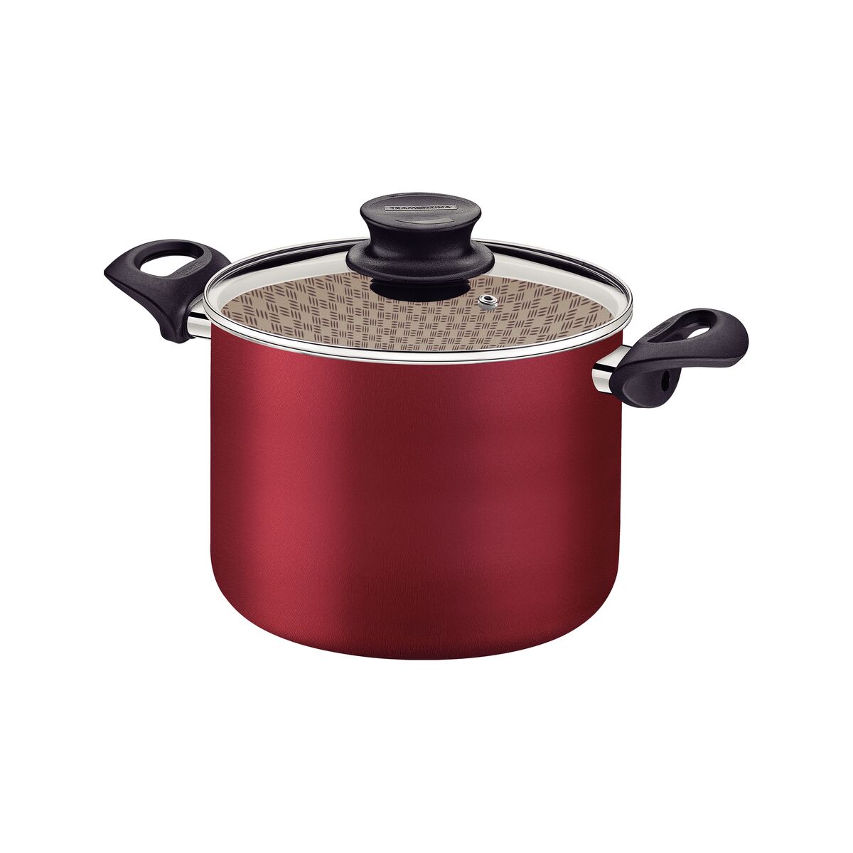 Caldeirão Tramontina Paris em Alumínio com Revestimento Antiaderente Starflon Max Vermelho com Tampa de Vidro 20 cm 4,2 L