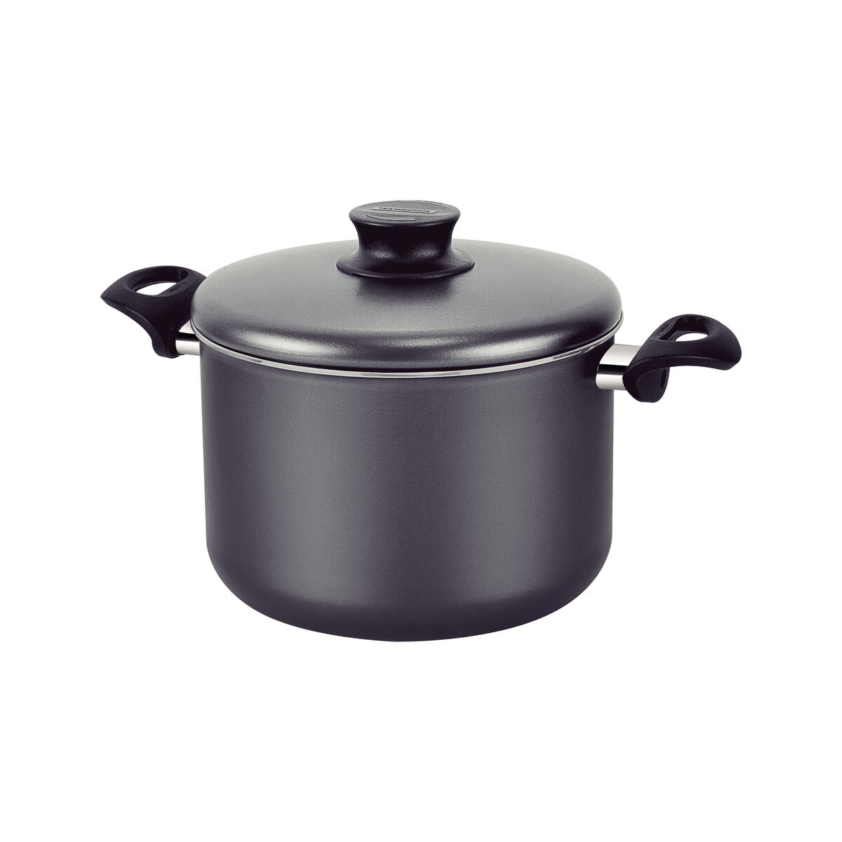 Alumínio com revestimento interno e externo de antiaderente Starflon T1. Alças de baquelite antitérmico e pegador de nylon. Tampa de alumínio com saída de vapor.