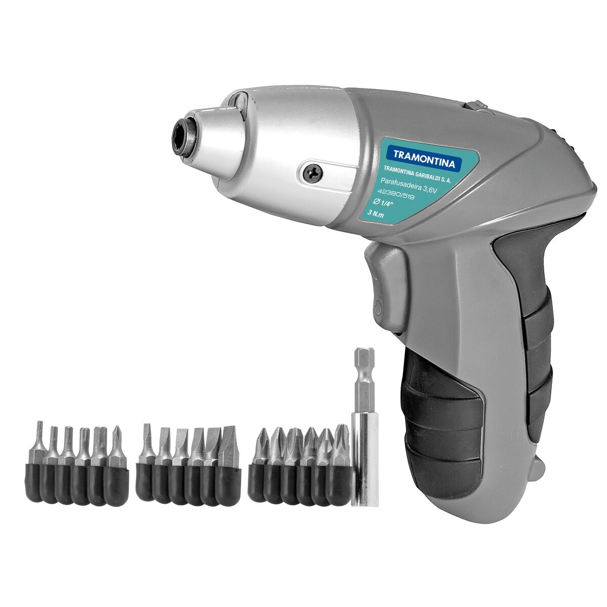 Parafusadeira 1/4" 21 Peças Tramontina para Uso Doméstico a Bateria Ni-Cd 3,6 V