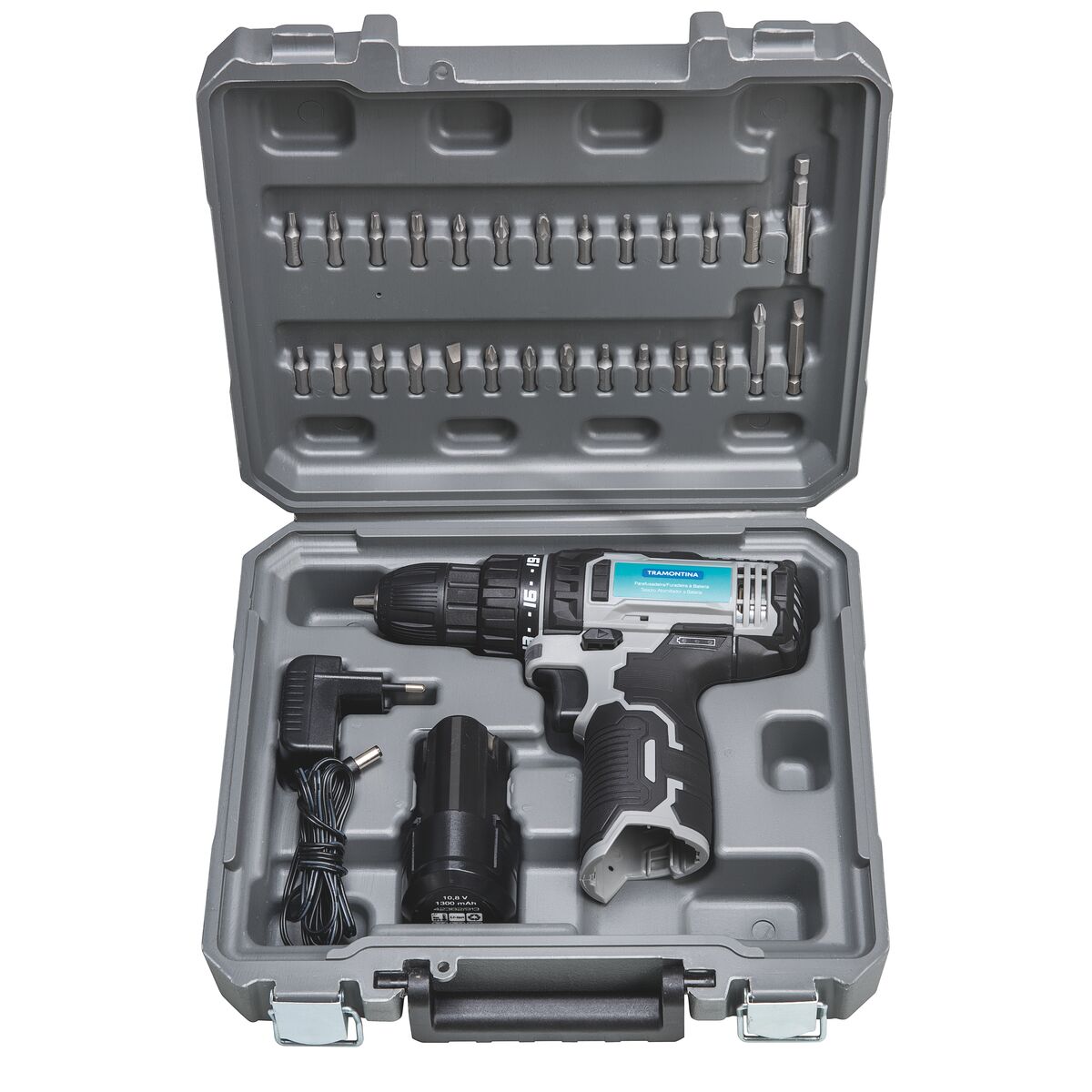 A Parafusadeira Furadeira Tramontina para Uso Doméstico 10,8 V com Maleta 30 peças vai deixar as tarefas diárias ainda mais fáceis. Pensando na praticidade, ela possui empunhadura ergonômica e emborrachada, tornando o uso mais confortável. Possui uma bateria moderna com íons de Lítio, que dispõe de tecnologia especial sem efeito memória, podendo ser recarregada a qualquer momento sem danificar as células; além disso, a bateria tem alta capacidade 1300 mAh/ 1,3 Ah, proporcionando alto desempenho e produtividade, além de possuir carga estável com baixa perda de capacidade e rendimento durante a utilização. Acompanha maleta com 30 peças, proporcionando diversas opções de utilização.
