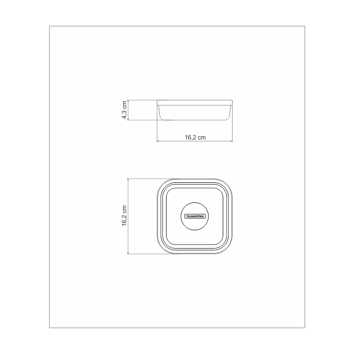 Dimensão em centímetros (Compr. X Larg. X Alt.): 16,2 x 16,2 x 4,3 cm