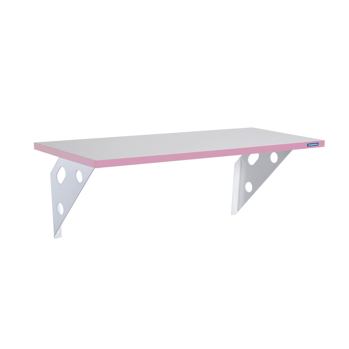 PRATELEIRA COLOR EM MADEIRA MACIÇA, COR BRANCA E BORDA ROSA. ACOMPANHA SUPORTE METÁLICO E KIT DE FIXAÇÃO.