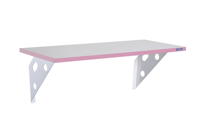PRATELEIRA COLOR EM MADEIRA MACIÇA, COR BRANCA E BORDA ROSA. ACOMPANHA SUPORTE METÁLICO E KIT DE FIXAÇÃO.