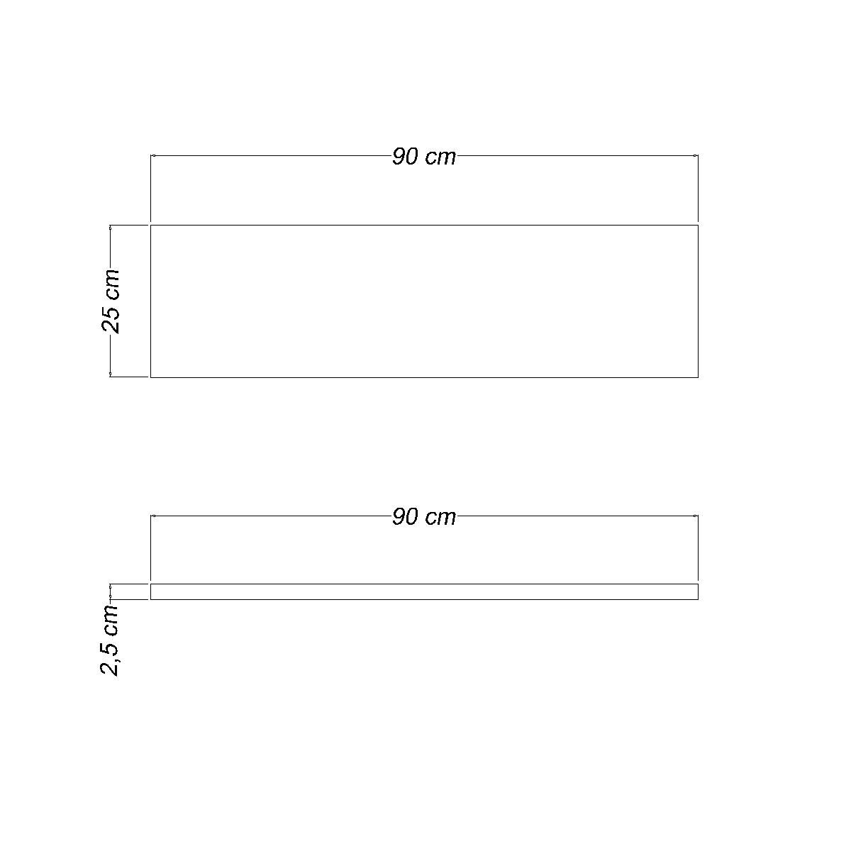 Dimensão em centímetros (Compr. X Larg. X Alt.): 90 x 25 x 2,5 cm