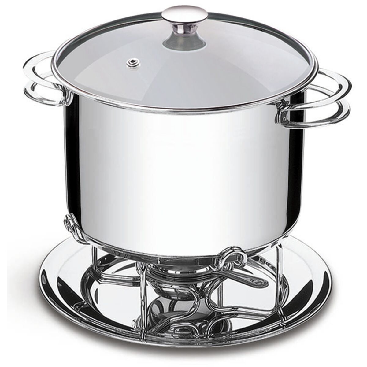 Rechaud aço inox com fogareiro e tampa de vidro