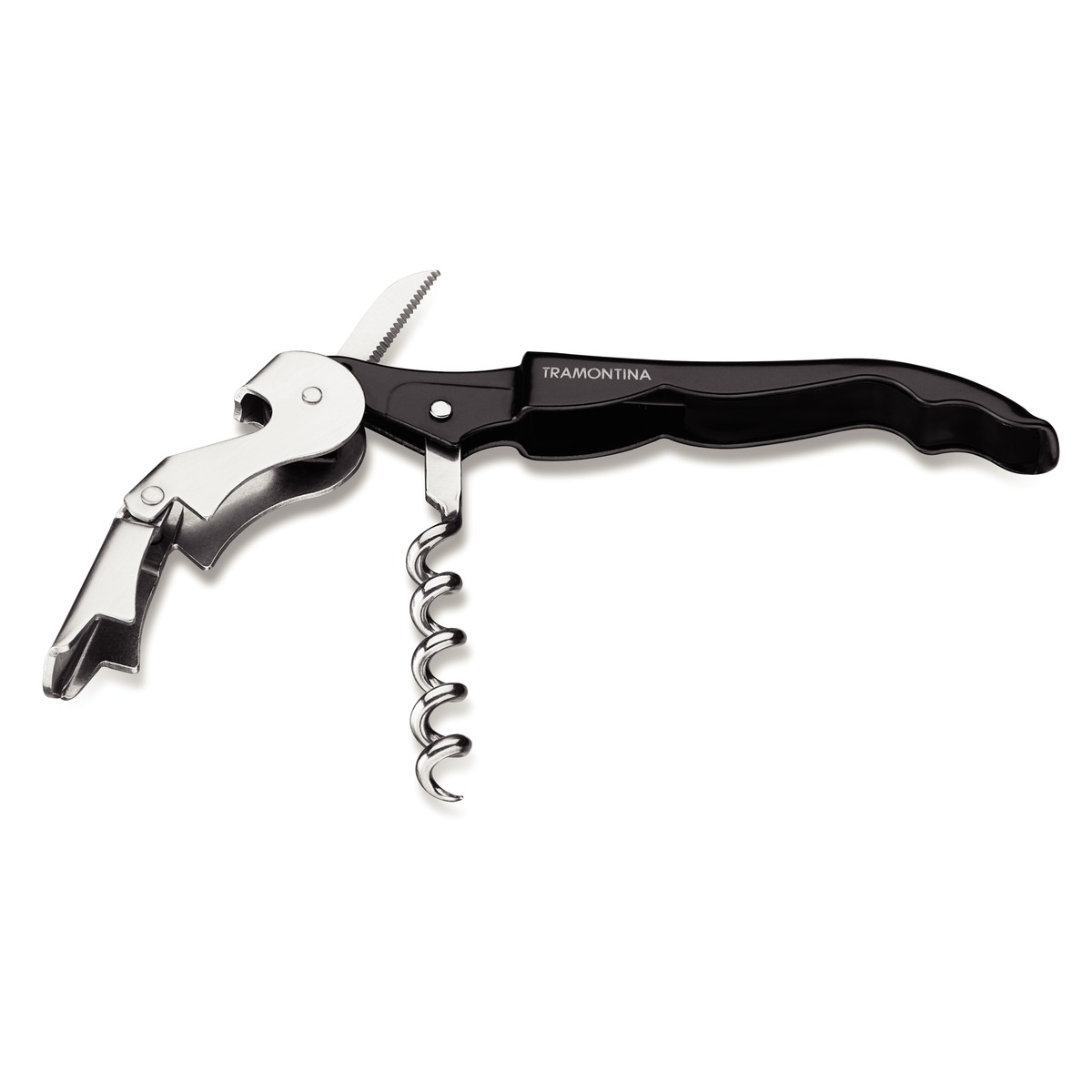 Nada pior do que se estressar para abrir uma garrafa de vinho, não é mesmo? Com o Saca-Rolhas com Abridor Tramontina em Aço Inox com Cabo Preto você terá toda praticidade para apreciar os bons momentos com tranquilidade. A linha de Canivetes da Tramontina traz peças diferenciadas que você pode utilizar em casa ou externamente. Com um design inovador, elas oferecem um manuseio confortável e seguro. A peça conta com saca-rolhas de aço inox e aço carbono pintado, garantindo sua durabilidade, qualidade e beleza. A escolha perfeita para tornar até uma tarefa rotineira em algo especial.