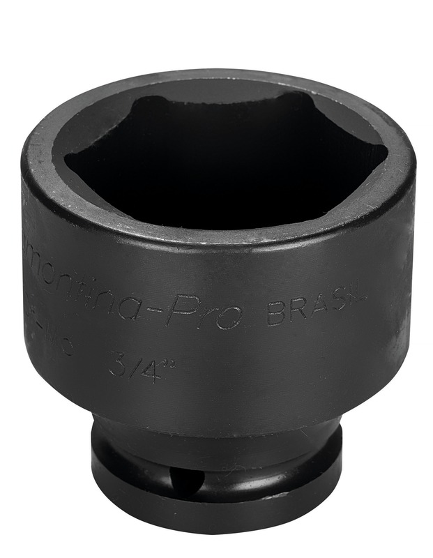 Forjado em aço cromo molibdênio e temperado. Acabamento fosfatizado. Perfil Hyper Drive (de cantos arredondados). DIN 3129. Um grande avanço na produção dos soquetes é a introdução do conceito ''Hyper Drive''. Este novo perfil melhora o acoplamento do soquete na porca ou parafuso, reduzindo as tensões geradas no aperto, prolongando a vida do soquete e do elemento de fixação. Os soquetes são submetidos a testes rigorosos de torque e de dureza para atender a norma DIN 1711-1. Os soquetes de impacto são produzidos com um aço ligado com cromo e molibdênio (Cr-Mo) na composição. Isto garante, após o tratamento térmico, uma maior resistência ao desgaste se comparados aos soquetes normais. Por isso, são os recomendados para a utilização com parafusadeiras elétricas ou pneumáticas. Afrouxar e apertar parafusos sextavados utilizando parafusadeiras pneumáticas. Amplamente utilizado na indústria de montagem e desmontagem de motocicletas. As ferramentas são produzidas e testadas conforme normas específicas.