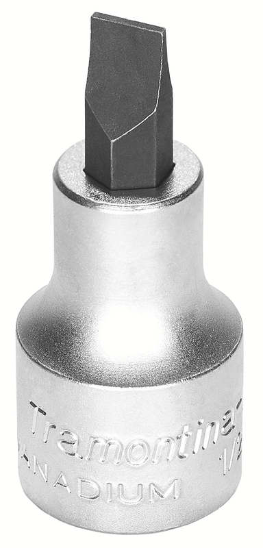 Soquete forjado em aço cromo vanádio e temperado. Ponteira em aço ferramenta S2. Soquete com acabamento cromado. Ponteira fosfatizada. DIN ISO 2380. Suporte plástico. Os soquetes são submetidos a testes rigorosos de torque e de dureza para atender a norma DIN 1711-1. Afrouxar e apertar parafusos com encaixe interno de fenda chata. As ferramentas são produzidas e testadas conforme normas específicas.