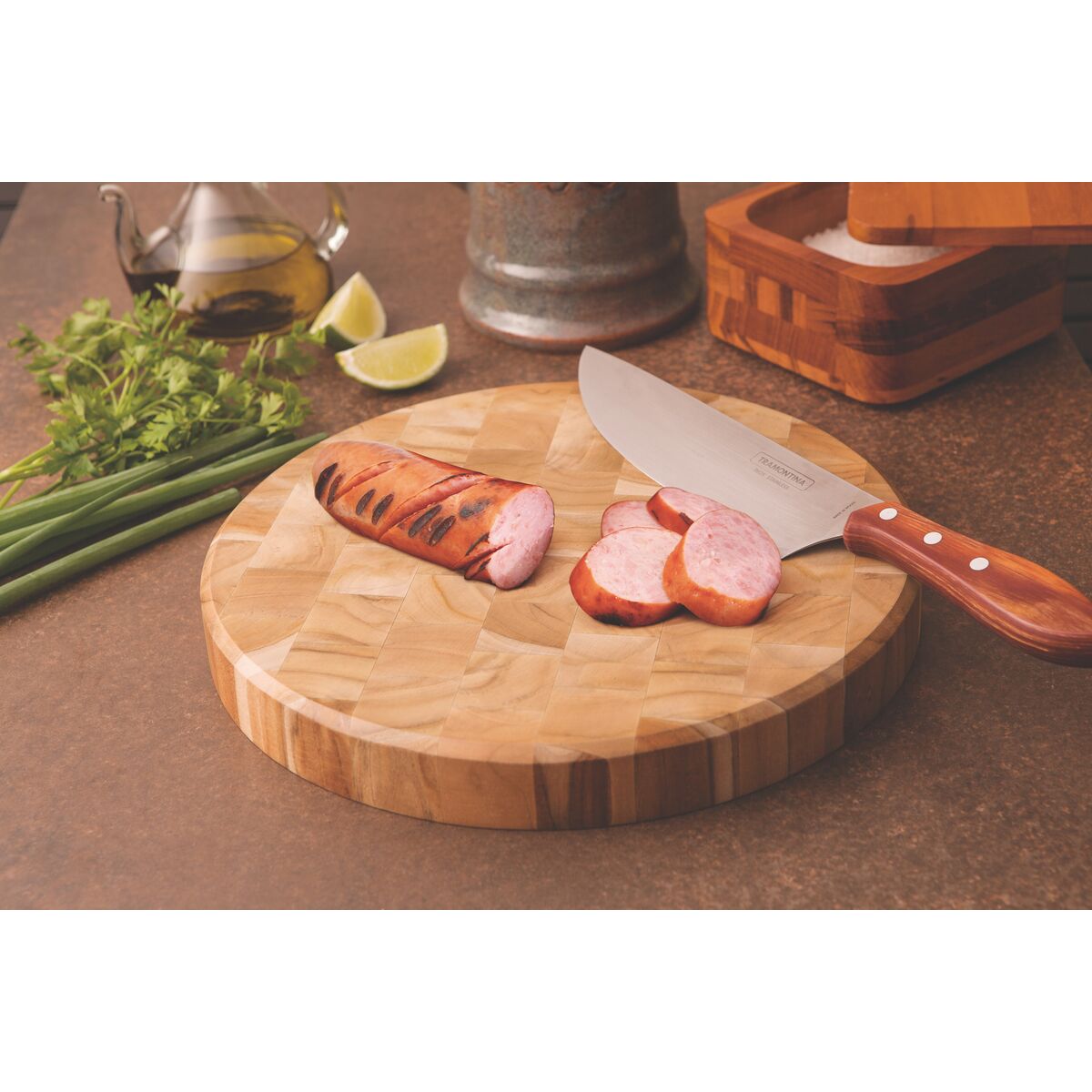 1. Produzida em madeira Teca, com acabamento em verniz atóxico; 2. Tábua para churrasco com design moderno; 3. Conta com a proteção antimicrobiana Microban, que inibe continuamente a proliferação de bactérias na superfície da madeira. A tábua comessa proteção é mais higiênica, fácil de limpar e mais segura para o preparo dos alimentos, pois atua contra bactérias e micróbios; 4. Ideal para cortar e servir; 5. Biodegradável.