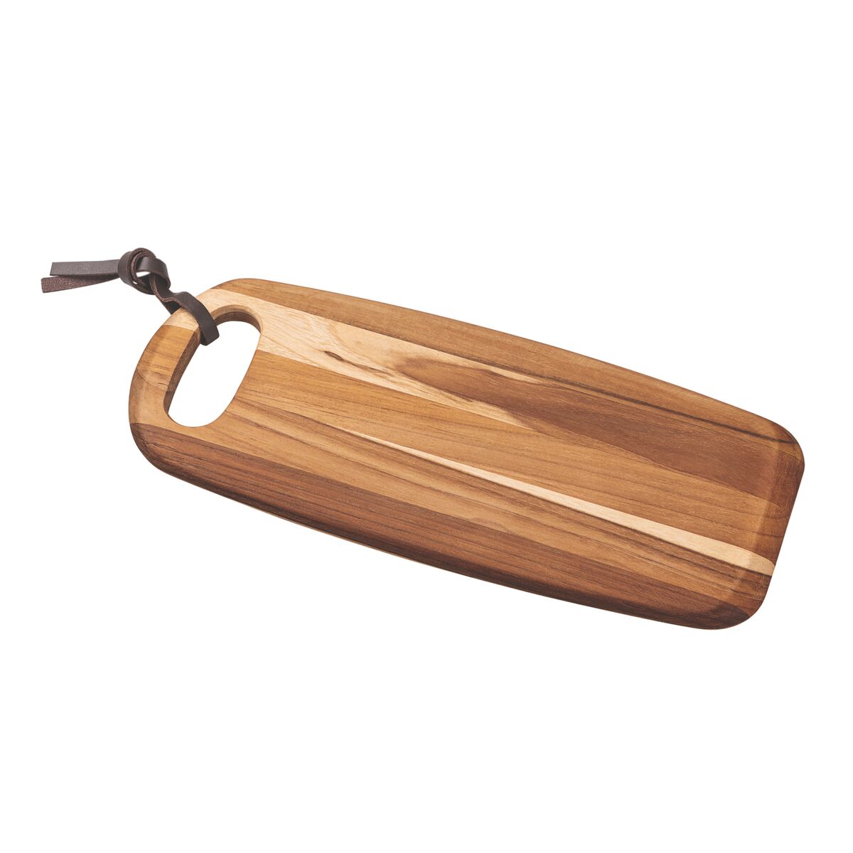 1 - Tábua para cortar e servir produzida em madeira tropical Teca de alta densidade com proteção em óleo mineral.