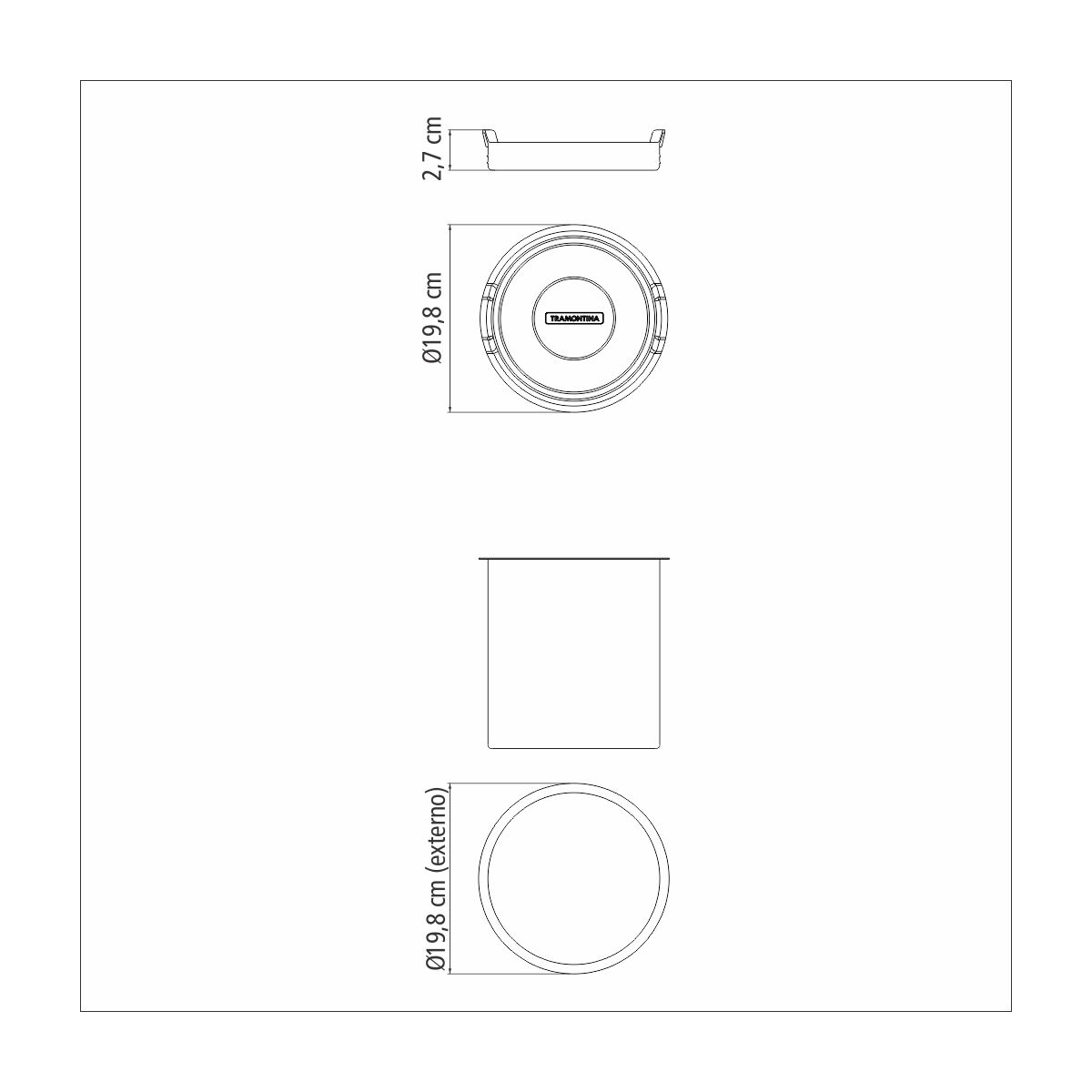 Dimensão em centímetros (Compr. X Larg. X Alt.): 20,3 x 20,3 x 2,8 cm