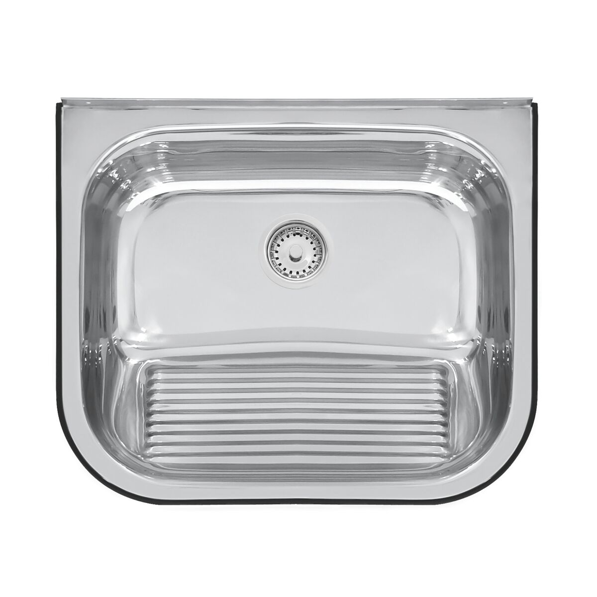 Produto comercializado no Brasil e exportação. Aço Inox AISI 304 com 0,8 mm de espessura e acabamento polido. Acompanha válvula de Ø 3 1/2". Profundidade da cuba 225 mm. Capacidade 30L.