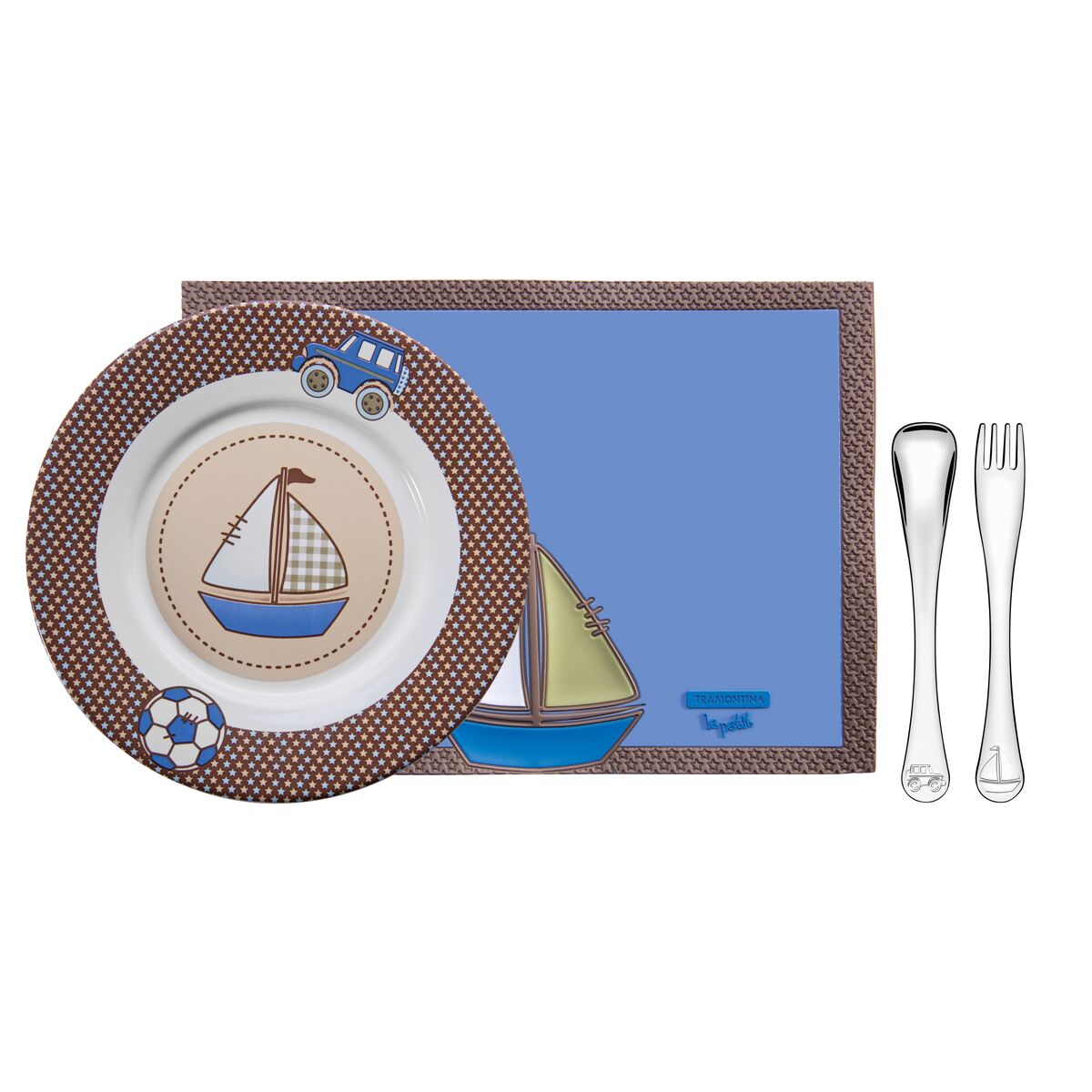 Kit Infantil Tramontina para Refeição Azul em Cerâmica e Aço Inox 4 Peças