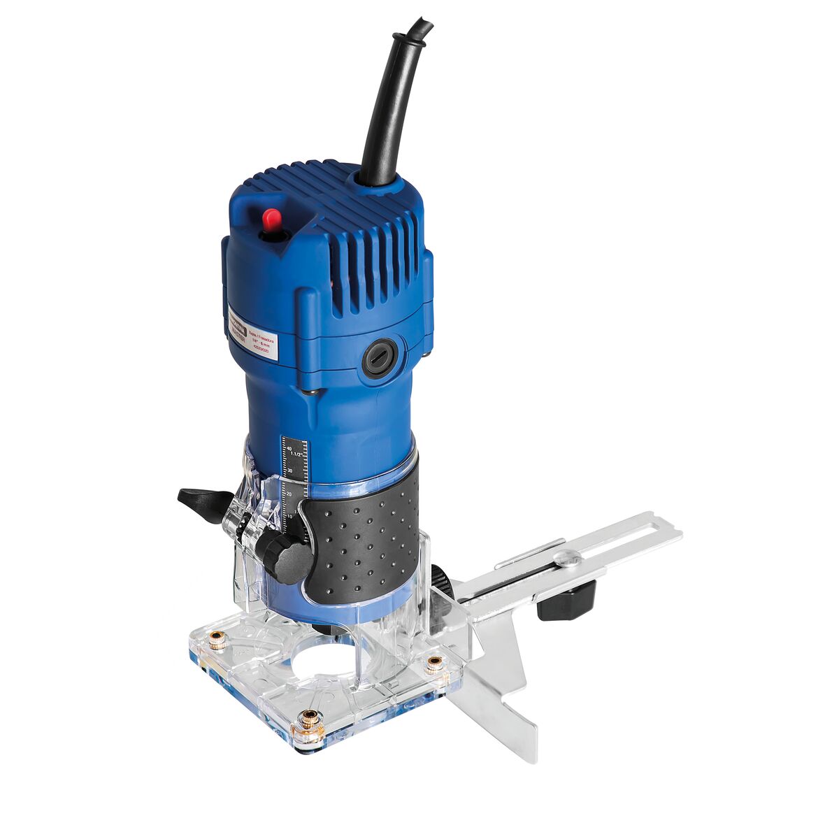 Potência: 550 W. Frequência: 50/60 Hz. Rotação: 0-30.000 min-1 / rpm. Corpo e botões injetados. Cabo elétrico de 2 m. Ajuste de profundidade prático e preciso. Acompanha pinça de 1/4 e 6 mm, 2 chaves 10 e 17 mm, para troca de fresas e manual de instruções. A Tupia foi projetada para fresar madeira, plásticos e materiais leves. Ela é apropriada para fazer perfis, sulcos, ranhuras, chanfros, etc. Para ter mais precisão nos processos pode-se utilizar a escala de ajuste da profundidade e também a placa guia.