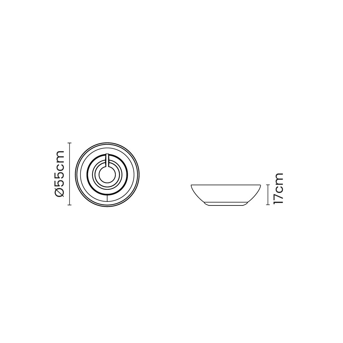 Dimensão em centímetros (Compr. X Larg. X Alt.): 55 x 55 x 17 cm
